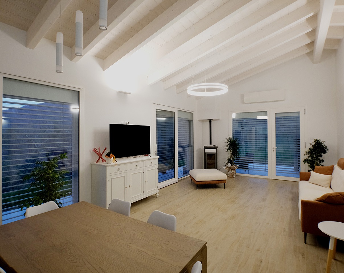 Questa casa è il risultato di un’attenta progettazione che coniuga la tradizione costruttiva con le più avanzate tecnologie. La scelta del legno lamellare e della tecnologia “Platform Frame Subissati” garantisce un’elevata resistenza strutturale e un’ottima coibentazione termica e acustica.