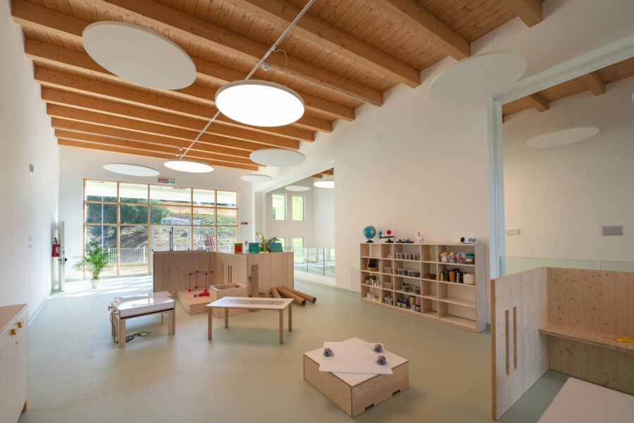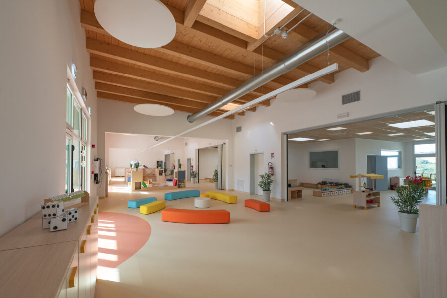 Il nuovo polo scolastico 0–6 di Offida è un progetto in legno che integra sicurezza antisismica, comfort ambientale e qualità architettonica. Un edificio pensato per rispondere alle esigenze educative dell’infanzia, creando spazi luminosi, protetti e flessibili, capaci di favorire benessere, relazione e continuità tra scuola e territorio.
