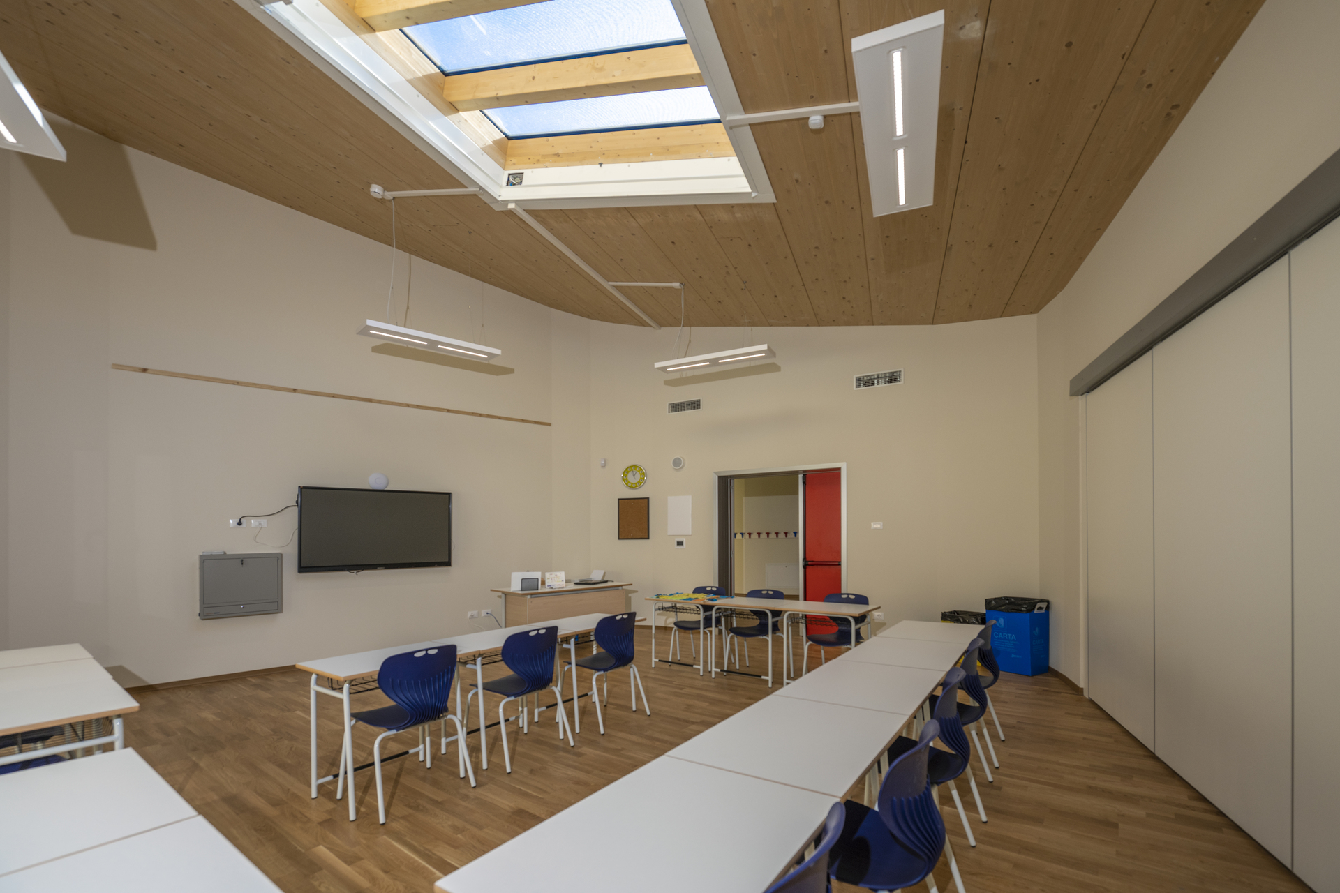 Un progetto che coniuga funzionalità, sostenibilità e qualità percettiva, restituendo uno spazio scolastico pensato per sostenere la crescita, la socialità e l’esperienza di apprendimento con equilibrio, continuità e leggerezza.