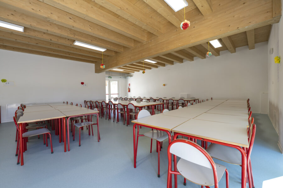 La struttura è caratterizzata da scelte costruttive orientate al risparmio energetico, al comfort interno e alla durabilità. Le ampie aperture favoriscono luce naturale e connessione visiva con l’esterno, mentre gli spazi interni sono distribuiti per facilitare relazioni, movimento e attività didattiche differenziate.