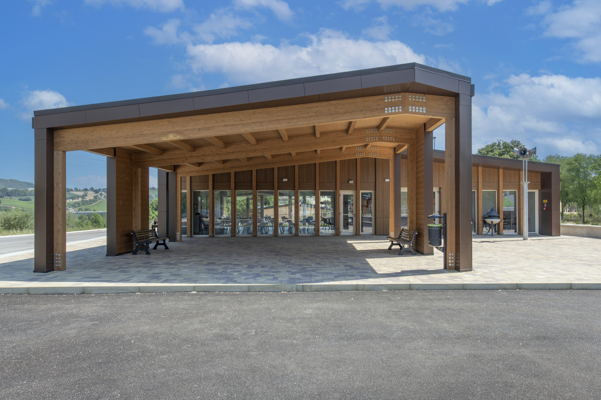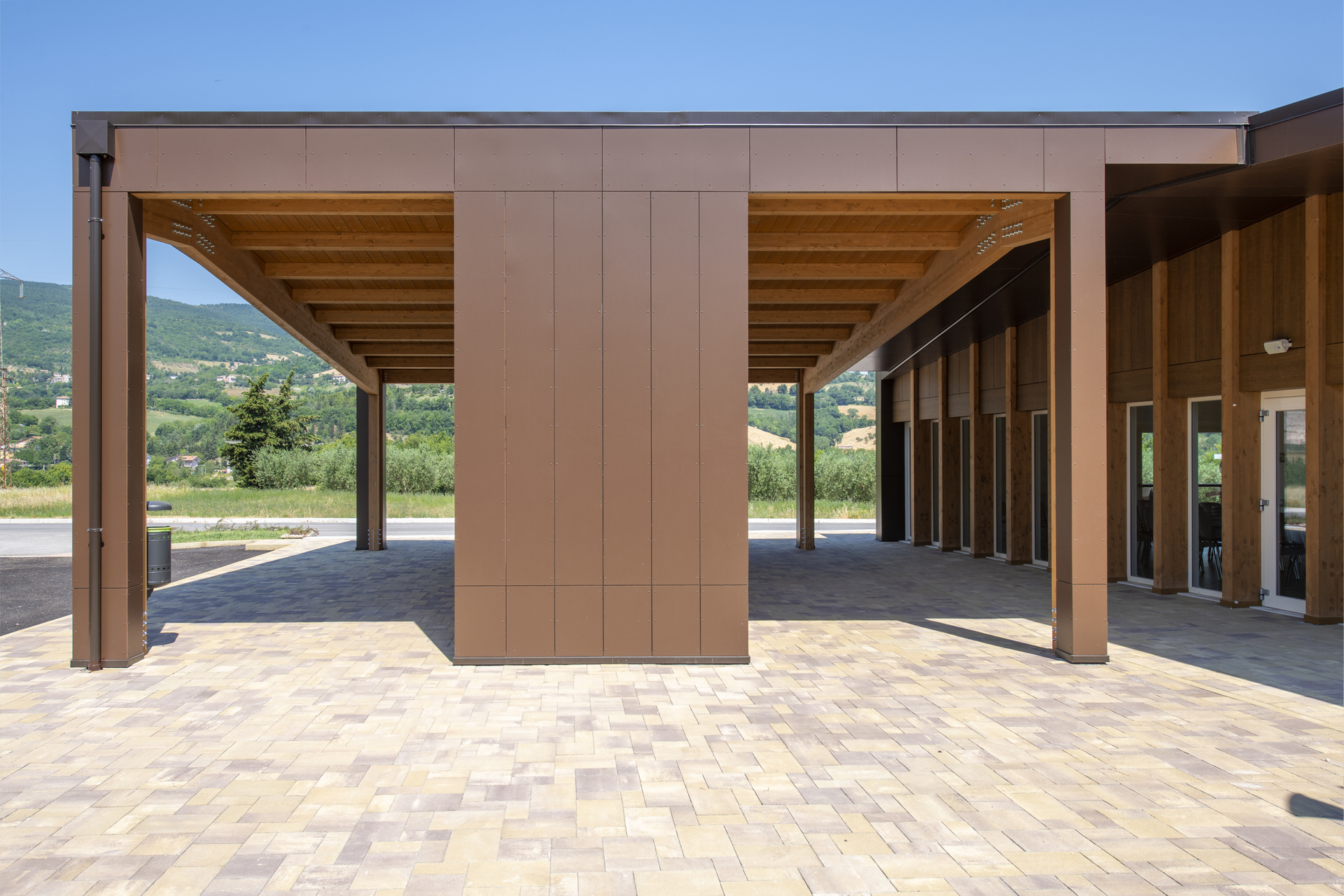 La scelta compositiva si fonda su un linguaggio architettonico misurato, sobrio ma contemporaneo, che valorizza la materialità e la costruzione come elementi di relazione con l’ambiente circostante.