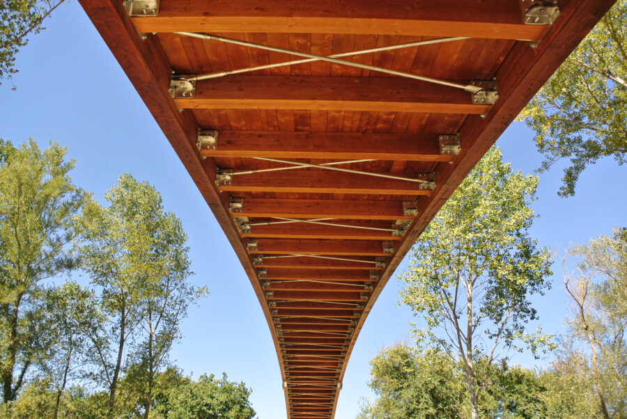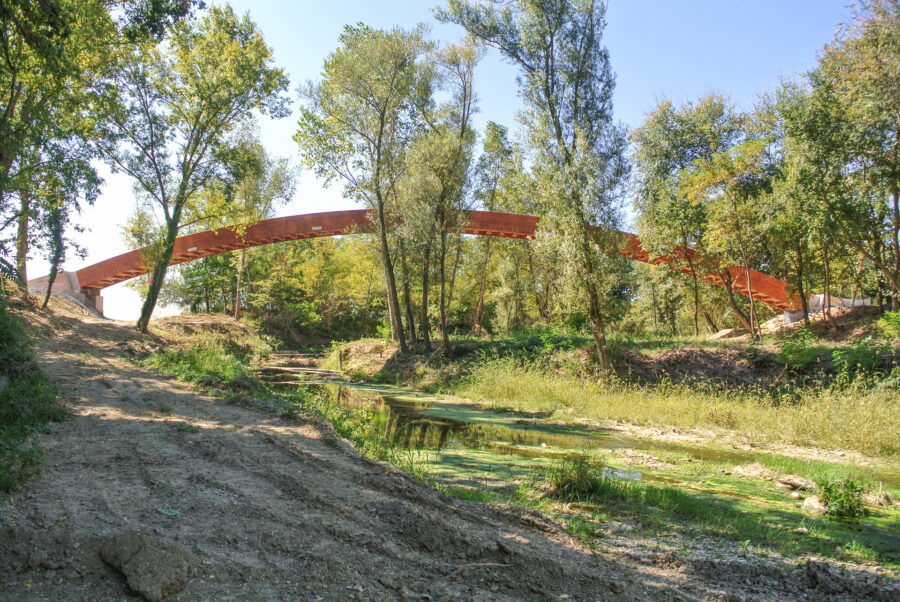 Ponte pedonale con struttura ad arco 3 cerniere lunghezza appoggio 63 mt
