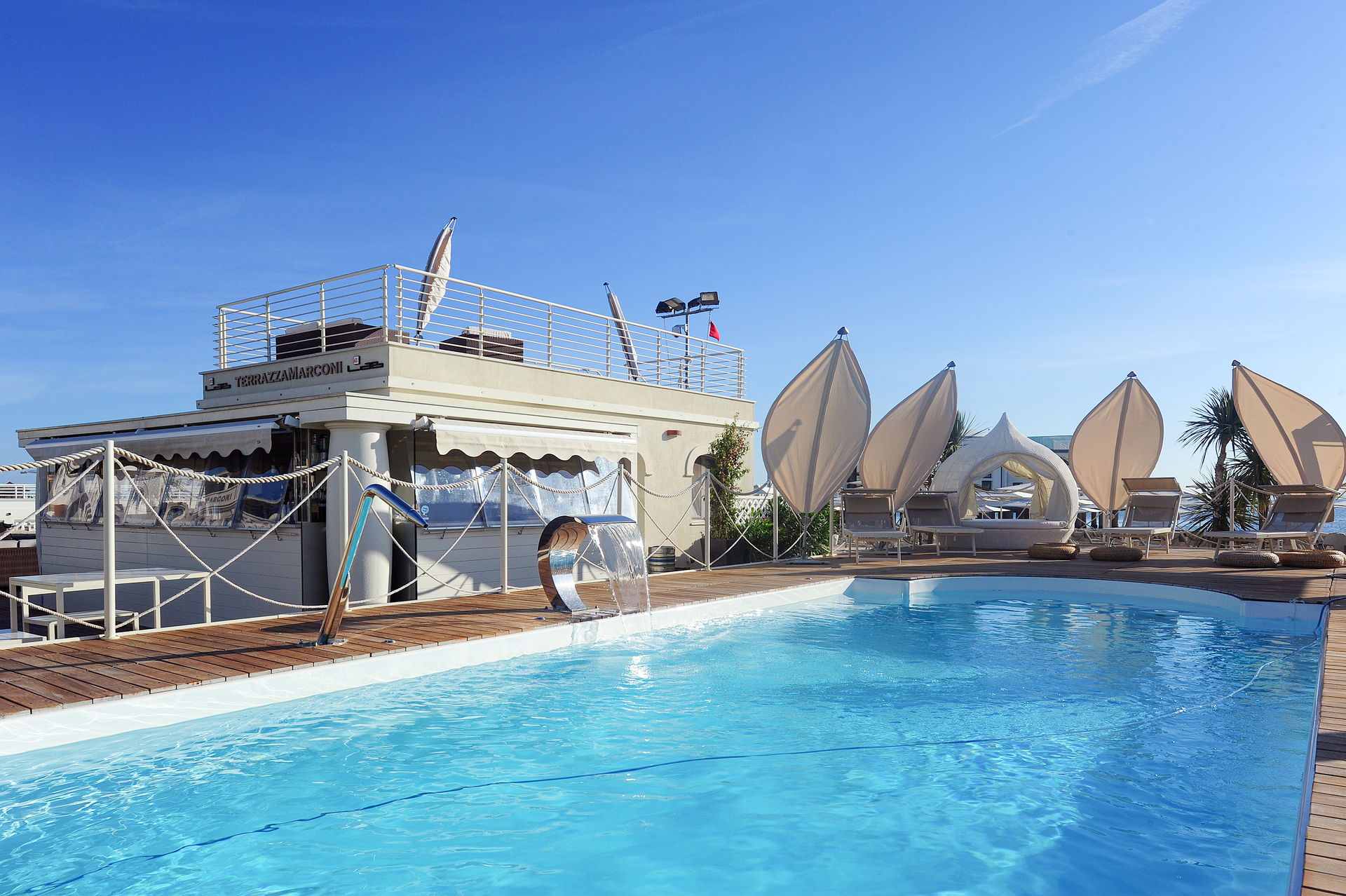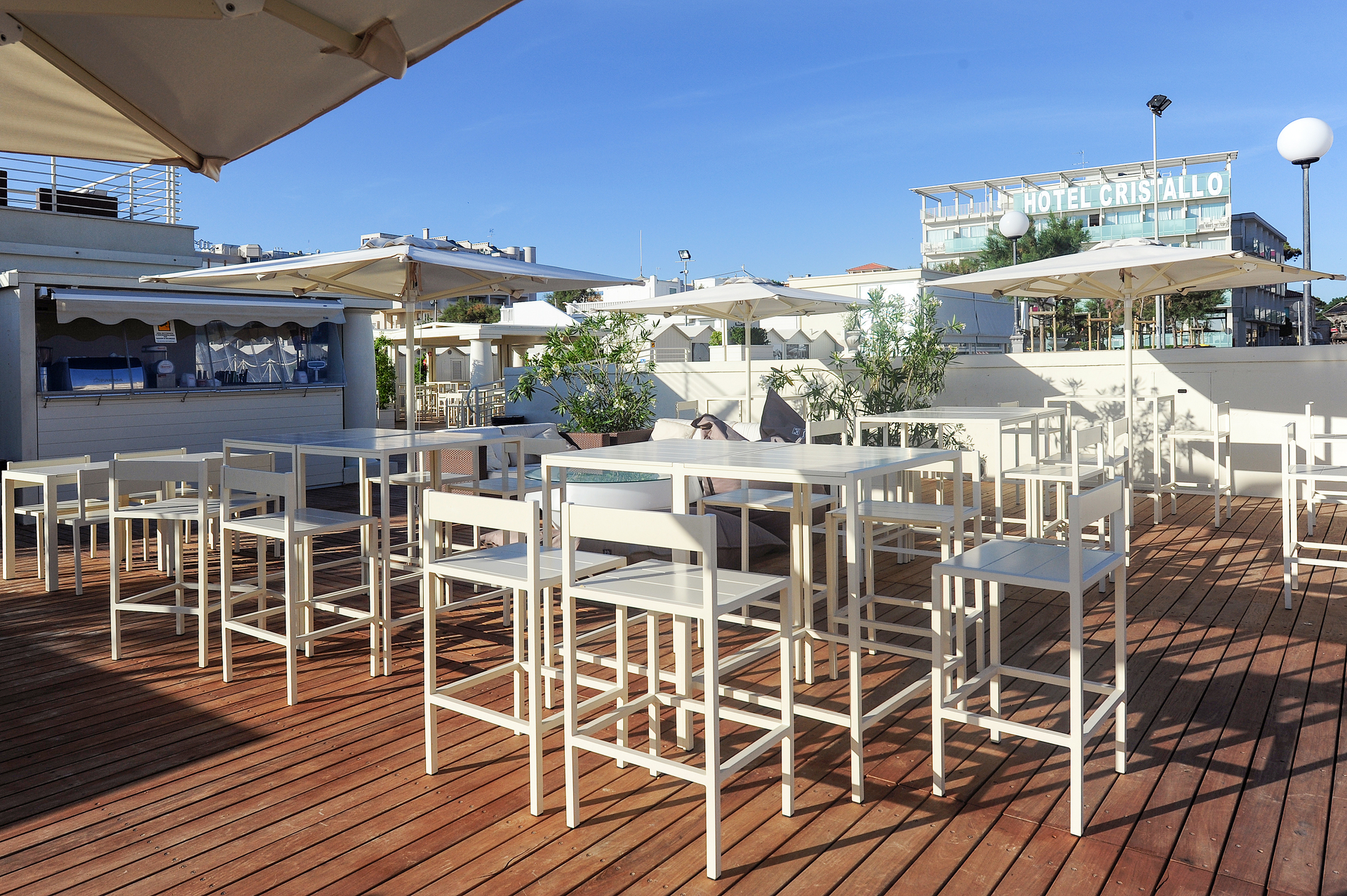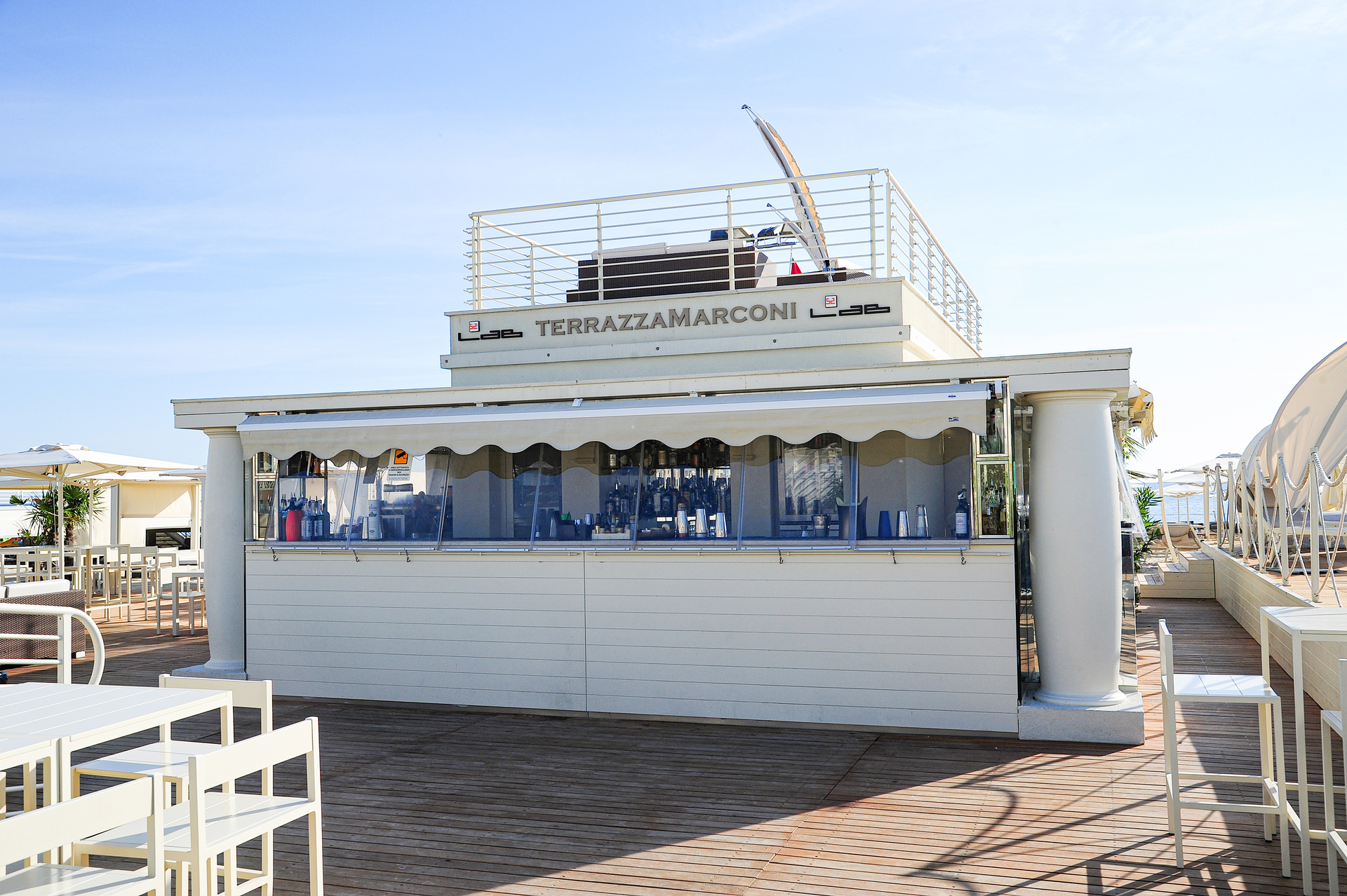 Stabilimento balneare composto da ristorante, caffetteria, strutture ombreggianti e cabine in legno