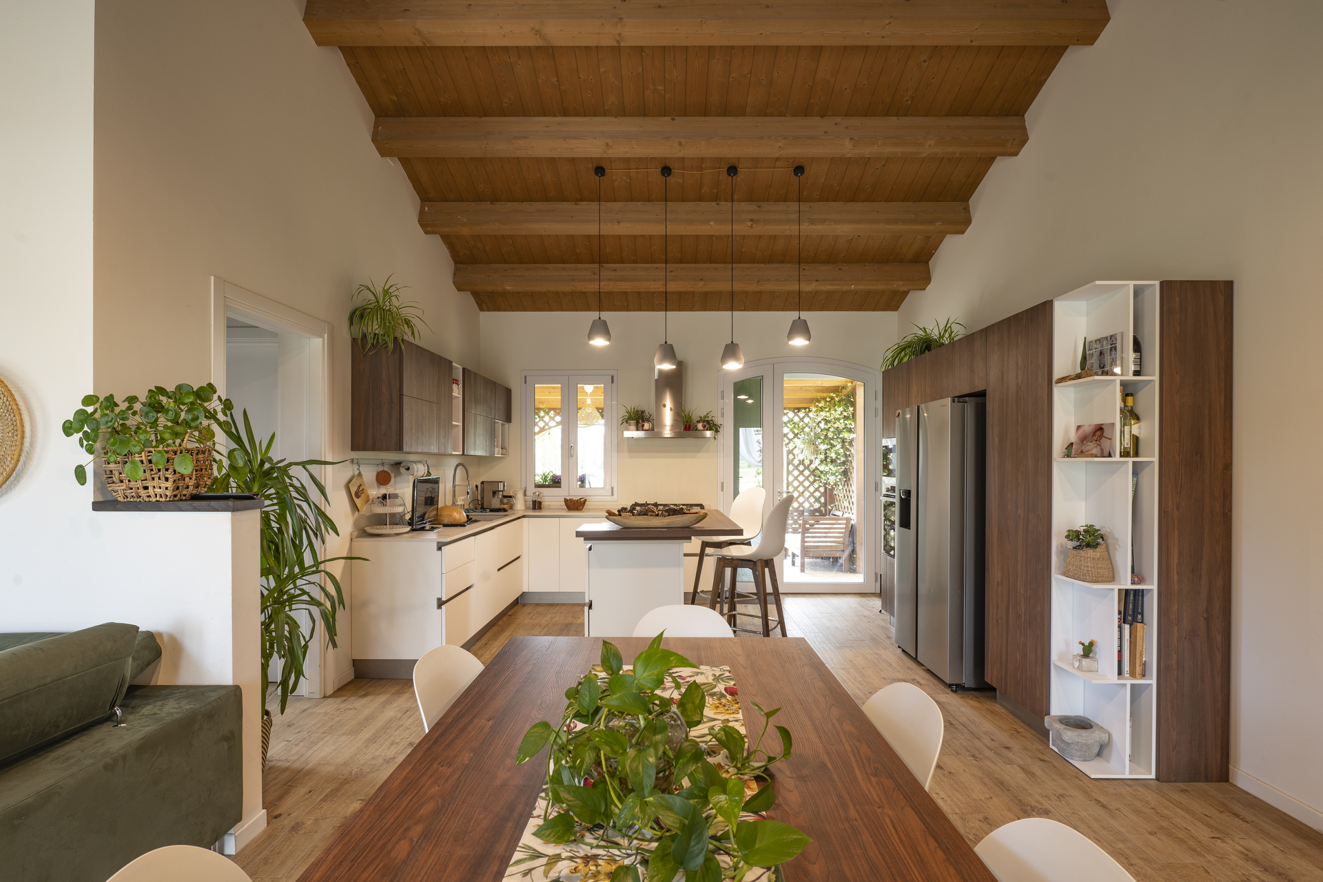 La scelta del legno lamellare non è solo estetica: garantisce elevate prestazioni energetiche, isolamento termo-acustico e un ambiente interno sano, mentre la composizione degli elementi strutturali conferisce leggerezza visiva e robustezza tecnica.