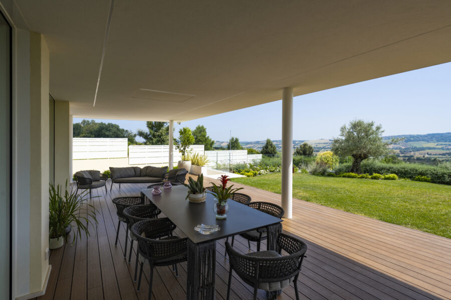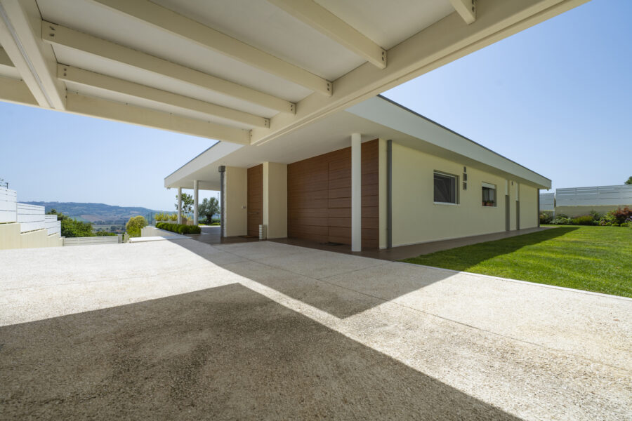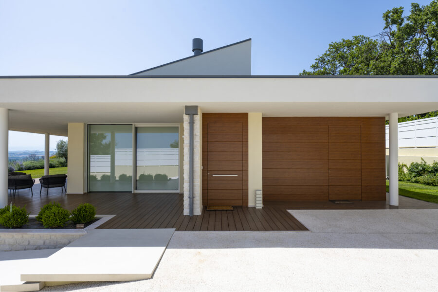 Materiali, dettagli costruttivi e finiture sono calibrati per restituire un linguaggio architettonico contemporaneo, capace di unire estetica e prestazioni, e definiscono una casa in cui comfort, sostenibilità e stile convivono in armonia.
