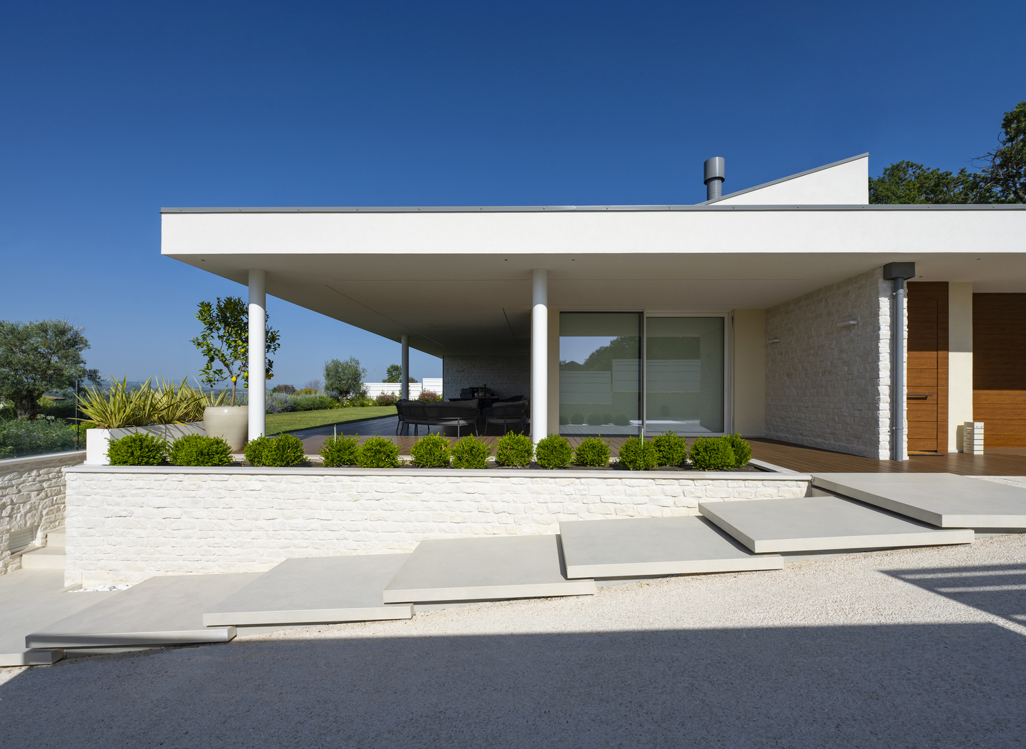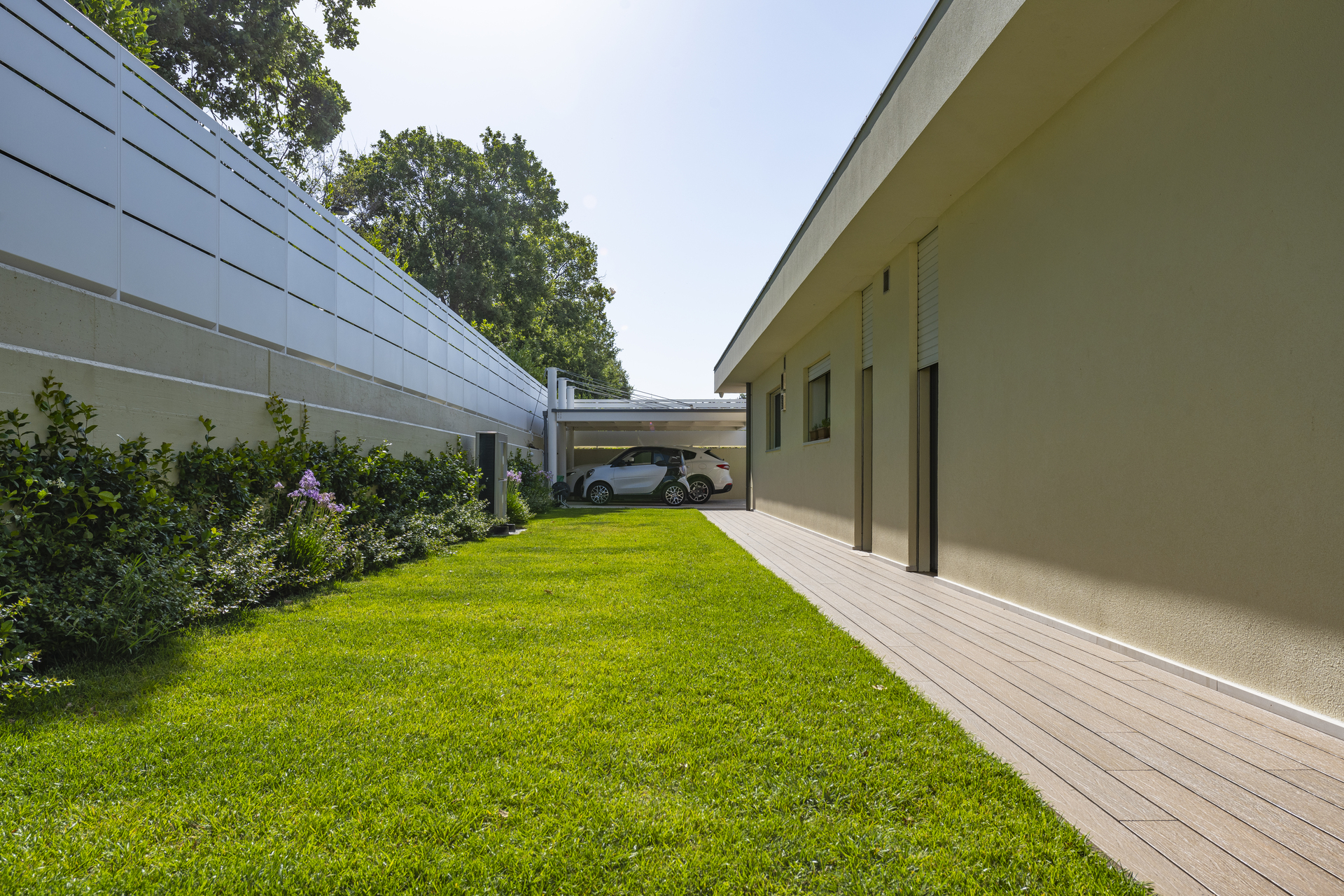 Materiali, dettagli costruttivi e finiture sono calibrati per restituire un linguaggio architettonico contemporaneo, capace di unire estetica e prestazioni, e definiscono una casa in cui comfort, sostenibilità e stile convivono in armonia.