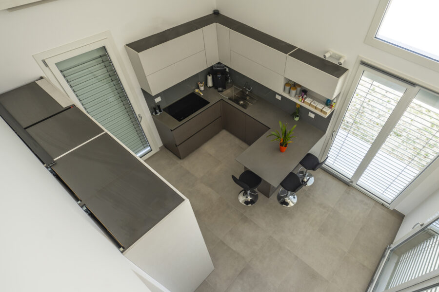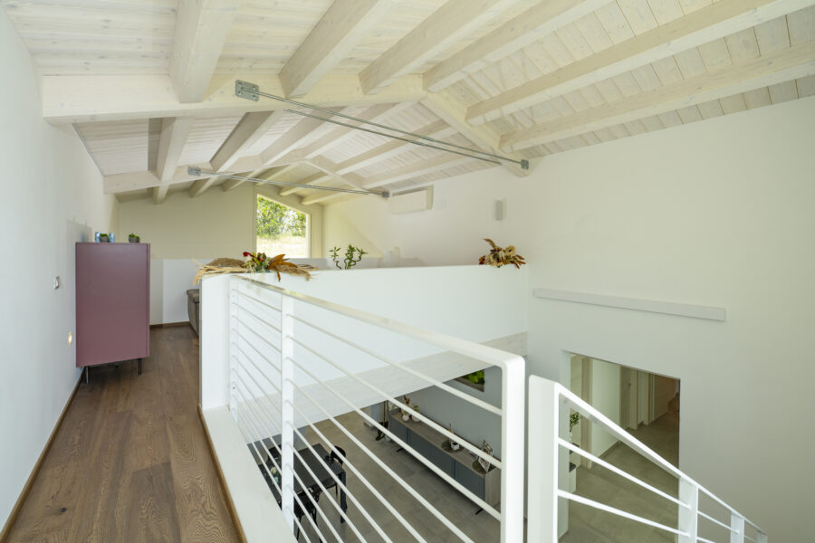Le aperture sono studiate per favorire la connessione visiva con l’esterno, permettendo alla luce naturale di accompagnare la vita quotidiana. La distribuzione degli ambienti è pensata per offrire funzionalità e qualità spaziale, con un equilibrio tra aree giorno aperte e zone notte riservate.